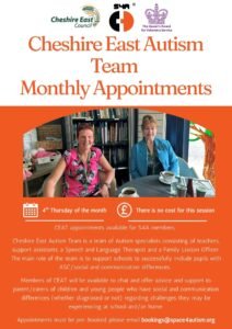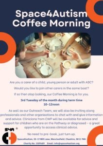 No appointments necessary, open to parent/carers & autistic adults who need advice and support or just a shoulder to cry on.